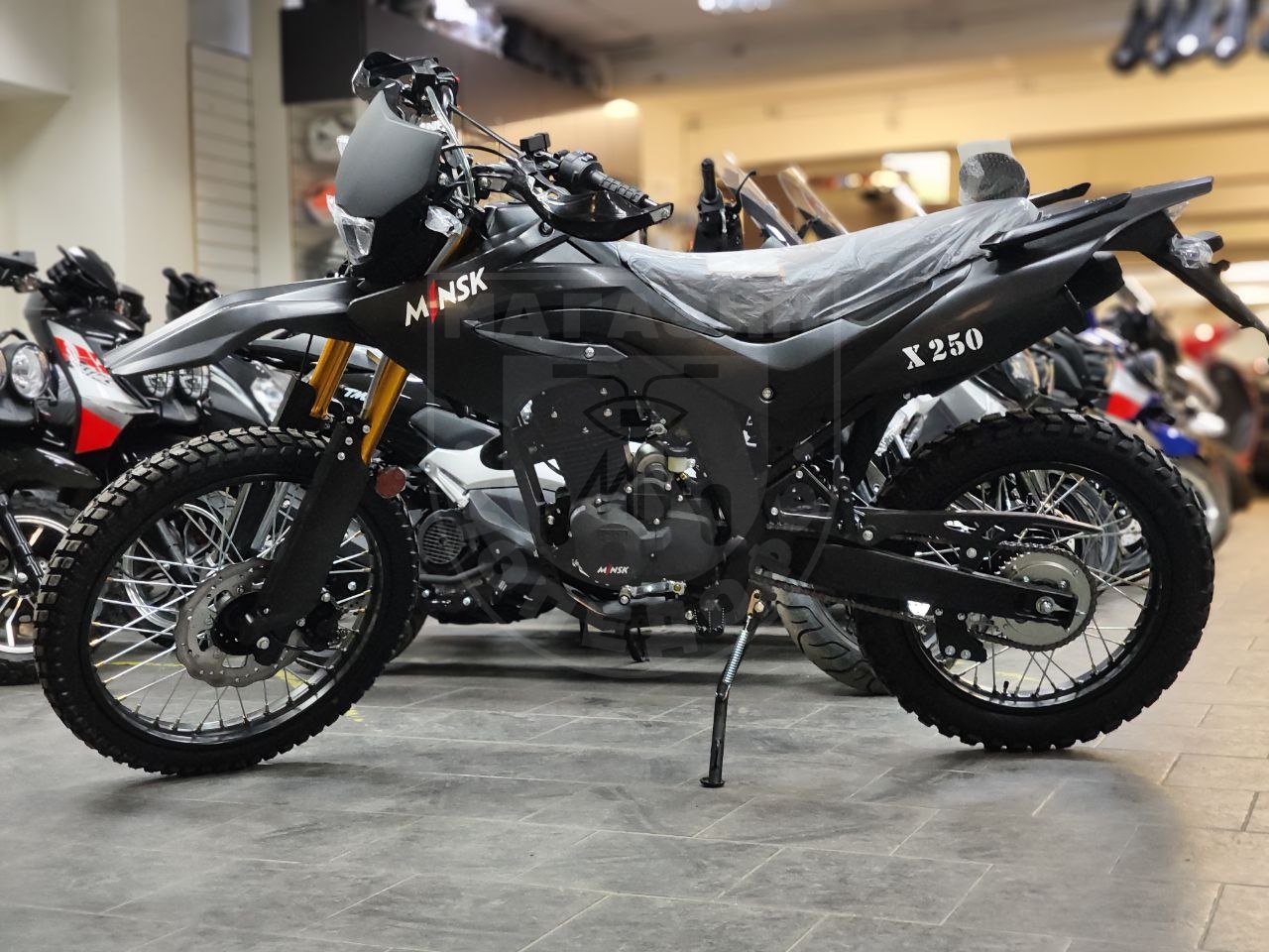 Купить оригинальный мотоцикл Минск X 250 по низкой цене без посреднических надбавок можно в магазине Мопедофф СПб. Мы являемся официальными поставщиками данного производителя в России, и предоставляем оригинальные заводские мотоциклы по первой цене, с гарантией и сертификатами завода изготовителя. Только у нас можно пройти тест-драйв на мотоцикле минск, заказать с доставкой в любой регион России - оплатив при получении или оформить онлайн кредит или рассрочку. Всегода действует программа лояльности для наших клиентов - подарки при покупке, скидки.
